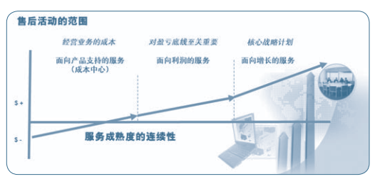 售后服務(wù)和產(chǎn)品支持對(duì)于當(dāng)今的產(chǎn)品制造商起著越來(lái)越重要的作 用 — 平均而言,它們占總收入的 25% 或以上。一些公司采取以 售后服務(wù)為中心的策略在競(jìng)爭(zhēng)中脫穎而出,并且將自身轉(zhuǎn)變?yōu)橛?服務(wù)推動(dòng)的企業(yè) — 服務(wù)收入在總收入中占 50% 以上。此市場(chǎng)轉(zhuǎn)變起因于以下事實(shí):